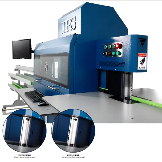 The TPS Automatic Multi‑Functional Channel Letter Bending Machine (Model TP‑S9710) is a high‑precision CNC workhorse designed for bending, slotting, notching, and flanging a broad range of materials—stainless steel, aluminum, galvanized steel, strip metal, and aluminum profiles—into custom channel letters and signage components. With its advanced 7‑axis control system driven by four servo motors and three stepper motors, it delivers exact V‑cuts at angles ranging from 45° to 140°, accommodating material heights up to 175 mm (flat) and thicknesses up to 1 mm for stainless steel and 2 mm for aluminum. Operating on a 5 kW AC200V power supply (with optional 0.4–0.6 MPa air assist), it automates feeding, bending, cutting, slotting, and angle trimming for both sheet and profile work. With a 900 kg frame and CNC‐controlled motion, the TPS S9710 delivers fast, consistent, and complex bends ideal for high‑volume signage shops and fabricators seeking efficiency and accuracy.